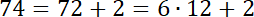 Liczbę 74 zapisz w postaci sumy liczby podzielnej przez 6 i liczby 0, 1, 2, 3, 4 lub 5.