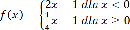 Rysowanie wykresu rozbij na dwa etapy. Najpierw naszkicuj wykres górnej funkcji. Zauważ, że będzie on półprostą. Wybierz krańcowy i dowolny argument, który będzie należał do podanego przedziału i wyznacz ich wartości dla wzoru funkcji