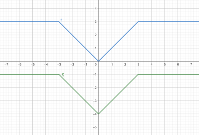 , należy każdy punkt znajdujący się na wykresie narysowanej funkcji przesunąć o 4 jednostki w dół.
