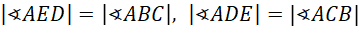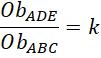 Trójkąty ADE i ABC są podobne z cechy KKK – odpowiadające sobie kąty mają równe miary.