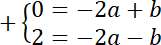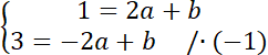 Współrzędne punktów A i B podstaw pod powyższe równanie. Zauważ, że powstanie układ dwóch równań z dwoma niewiadomymi. Całe drugie równanie pomnóż przez -1, aby współczynniki przy