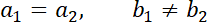 Zauważ, że aby układ równań był sprzeczny, to proste muszą być równoległe, ponieważ wtedy nigdy się nie przetną. Oznacza to, że współczynniki a muszą być takie same, a współczynniki b różne.