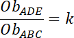 Trójkąty ADE i ABC są podobne z cechy KKK – odpowiadające sobie kąty mają równe miary.