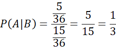Wypisz wszystkie zdarzenia sprzyjające podanym oraz oblicz ich ilość oraz ilość wszystkich zdarzeń elementarnych. Następnie skorzystaj ze wzoru na prawdopodobieństwo zdarzenia A pod warunkiem, że zaszło zdarzenie B: