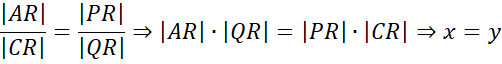 – kąty wierzchołkowe, więc . Co oznacza, że trójkąty APR i CRQ są podobne z cechy KKK. Na tej podstawie: