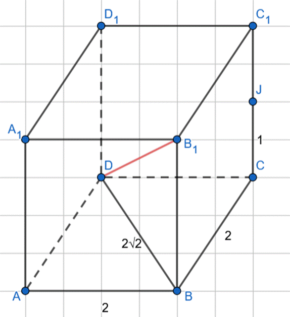 Zapisz przykładowy odcinek, którego końce należą do krawędzi sześcianu, a długości jego rzutów prostokątnych na ściany sześcianu przyjmują wartości 2 i , jeśli dany jest sześcian o krawędzi długości 2.