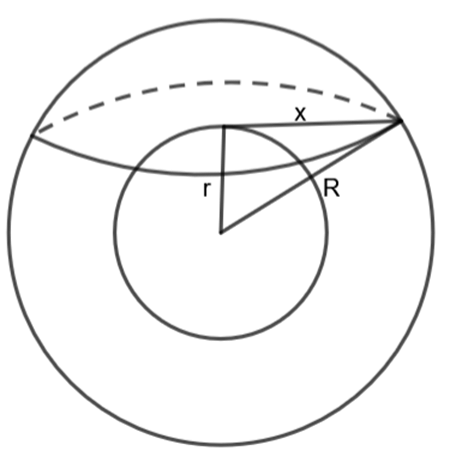 Wyznacz , jeśli są dwie kule o promieniach 6 cm i cm oraz wspólnym środku. Pole przekroju utworzonego przez przecięcie większej kuli płaszczyzną styczną do mniejszej kuli jest równe .