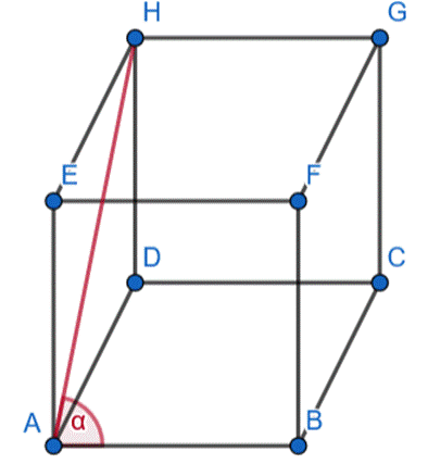 Narysuj sześcian przedstawiony poniżej i wskaż kąt, który przekątna AH ściany bocznej sześcianu tworzy z krawędzią AB. Ustal, czy jest to kąt prosty.