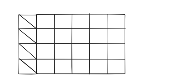Figura musi składać się z 20 małych kwadratów o boku równym długości jednej kratki w zeszycie oraz 8 małych trójkątów o boku równym długości jednej kratki w zeszycie.