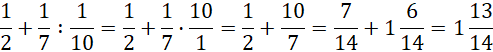 Pamiętaj, dzielenie należy wykonać przed dodawaniem. Zastąp dzielenie mnożeniem przez odwrotność drugiego ułamka, a następnie sprowadź składniki do wspólnego mianownika i dodaj do siebie ich liczniki. Wyłącz całości i wynik zapisz w postaci nieskracalnej.