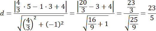 Wyznaczamy odległość punktu od prostej, będąca jednocześnie promieniem okręgu: