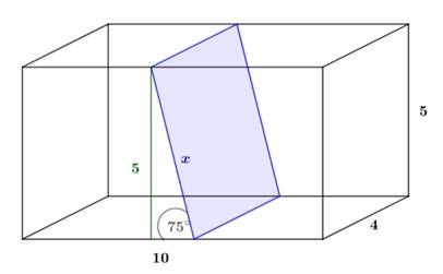 Przekrojem prostopadłościanu jest prostokąt, którego drugi bok (x)wyznacza, korzystając z zależności trygonometrycznych w trójkącie prostokątnym.