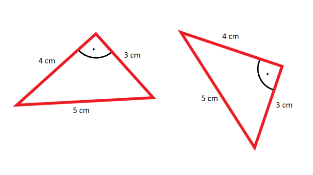 Przedstawione trójkąty to typowe trójkąty pitagorejskie o długościach przyprostokątnych 3 cm i 4 cm oraz przeciwprostokątnej 5 cm.