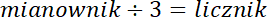 Licznik to liczba nad kreską ułamkową, a mianownik to liczba pod kreską ułamkową. Aby licznik był trzy razy mniejszy od mianownika musi dać się zapisać jako: