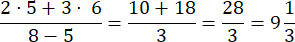 Wykonujemy działanie w liczniku: 2 • 5 + 3 • 6, pamiętając o kolejności działań, a mianownik pozostaje bez zmian.