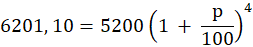 W tym zadaniu musisz obliczyć oprocentowanie lokaty rocznej, jeśli wpłacono 5200 zł i po 4 latach oszczędzania kwota ta wzrosła do 6201, 10 zł.