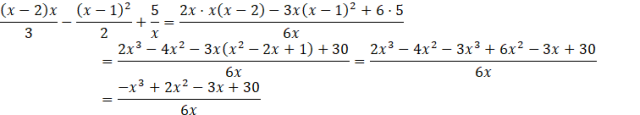 W działaniu, które musisz wykonać ułamki, mają różne mianowniki, a więc musisz sprowadzić je do wspólnego mianownika. W tym przypadku wspólnym mianownikiem może być iloczyn trzech mianowników, a więc