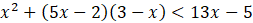 Aby rozwiązać nierówność, wymnóż nawiasy oraz zredukuj jednomiany podobne. Następnie skorzystaj ze wzoru skróconego mnożenia. Kwadrat dowolnej liczby rzeczywistej jest liczbą nieujemną, więc nierówność jest spełniona dla wszystkich x, dla których jej lewa strona jest różna od 0.