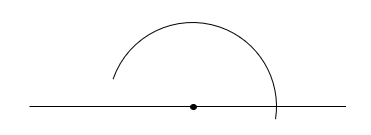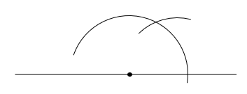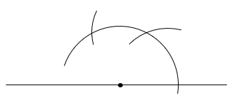 Wbij cyrkiel w punkt na dowolnej prostej mającej być ramieniem szukanego kąta i zakreśl łuk przecinający tę prostą (warto, by część łuku znajdująca się nad prostą była dosyć długa – szukany kąt będzie miał w końcu miarę większą od kąta prostego).