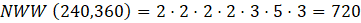 Aby obliczyć najmniejszą wspólną wielokrotność, rozłóż podane liczby na czynniki pierwsze, a następnie pomnóż przez siebie wszystkie czynniki pierwsze jednej liczby oraz czynniki drugiej liczby, które nie wystąpiły w rozkładzie na czynniki pierwsze w pierwszej liczbie.