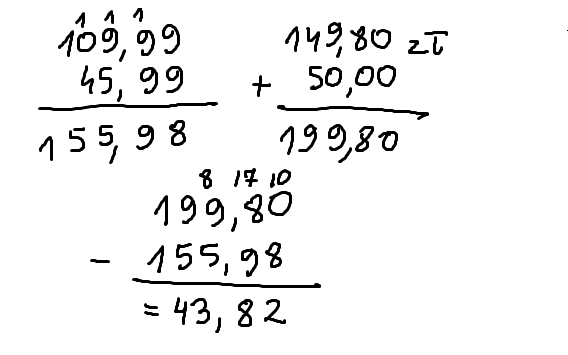 Wykonaj działania pisemne, pamiętaj by przecinki były w jednej linii.