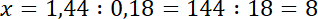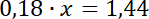 Skorzystaj ze wskazówki. Liczba 0,18 razy większa od x daje 1,44, więc liczba 0,18 razy mniejsza od liczby 1,44 jest równa szukanej wartości x.