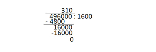 W tym zadaniu musisz wykonać dzielenie 496000: 1600 sposobem pisemnym.