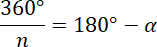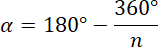 Miarę kąta wewnętrznego wielokąta foremnego o n bokach można obliczyć ze wzoru: