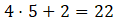dzieląc przez 4, dostaniemy 5 z resztą równą 2.