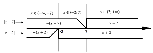 Rozważamy trzy przypadki, w których zapisujemy nierówność bez symbolu wartości bezwzględnej. Rozwiązujemy ją i sprawdzamy, które liczby z otrzymanego przedziału spełniają rozważany warunek, wyznaczając iloczyn przedziału z warunku oraz otrzymanego przedziału z nierówności: