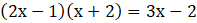 Uprość lewą stronę równania przemnażając każdy wyraz z pierwszego nawiasu z każdym wyrazem z drugiego nawiasu, a następnie przenieś wyrażenia z x na jedną stronę, a pozostałe na drugą: