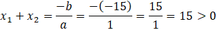 Korzystając z tych faktów, sprawdźmy, czy rozwiązania mają różne znaki, czy rozwiązania są dodatnie oraz czy suma rozwiązań jest większa od iloczynu rozwiązań: