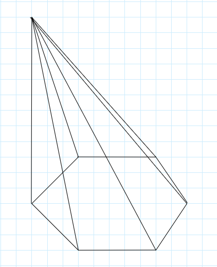Narysuj ostrosłup o podanych własnościach: jedna z krawędzi bocznych jest prostopadła do płaszczyzny podstawy, a podstawą jest: sześciokąt.