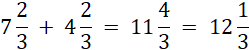 Aby dowiedzieć się, jaka jest to liczba, musisz wykonać dodawanie. Zamień na ułamki niewłaściwe, a następnie wykonaj dodawanie. Gdy dodajemy dwa ułamki o jednakowych mianownikach, dodajemy ich liczniki, a mianownik pozostawiamy bez zmian.