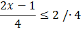 Aby wyznaczyć x z tej nierówności musisz wymnożyć obie strony nierówności przez mianownik (∙4), a następnie musisz dodać stronami liczbę niestojącą przy x (+1). Na końcu musisz podzielić obie strony przez liczbę stojącą przy niewiadomej (:2).
