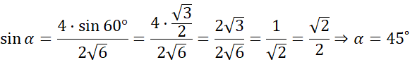γ = 180˚ - 60˚ - α = 180˚ - 60˚ - 45˚ = 75˚