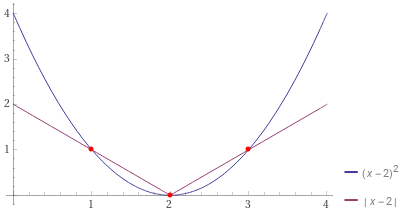 Porównujemy prawe strony równości. Rozwiązujemy równanie dzieląc na przypadki ze względu na wartość bezwzględną. Weryfikujemy, czy rozwiązanie zawiera się w omawianym przedziale, jeśli tak, to wyznaczamy wartość odpowiadająca danemu rozwiązaniu.