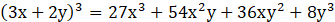 Podnieś wyrażenie 3x + 2y do potęgi trzeciej.