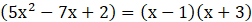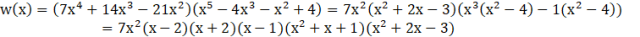 Rozkładamy wielomiany na czynniki korzystając z metody grupowania lub wyliczenia miejsc zerowych funkcji kwadratowej i jej postaci iloczynowej.
