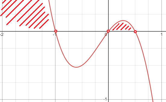 Zbiór B: Współczynnik przy najwyższej (nieparzystej), potędze jest ujemny, więc wykres zaczynamy rysować z lewej dolnej części układu współrzędnych. Wykres przecina oś w punktach -1, 0 oraz
