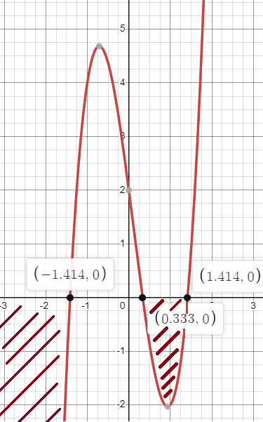 Zbiór A: Współczynnik przy najwyższej (nieparzystej), potędze jest dodatni więc wykres zaczynamy rysować z lewej górnej części układu współrzędnych. Wykres przecina oś w punktach