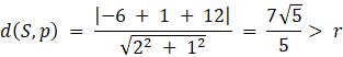 Należy sprawdzić, w jakiej odległości od prostej znajduje się środek okręgu: