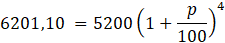 W tym zadaniu musisz obliczyć, ile wynosiło oprocentowanie lokaty, jeśli wpłacono 5200 zł na lokatę roczną, a po 4 latach stan oszczędności wynosił 6201,10 zł.