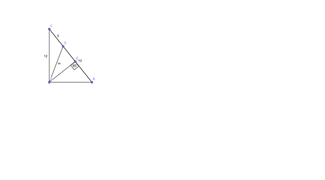 Wykorzystaj także twierdzenie Pitagorasa do obliczenia długości boku AD. Zauważ, że trójkąt AEC ma dwa takie same kąty jak trójkąt ABC, więc jest podobny z cechy KK. Następnie oblicz skalę podobieństwa i oblicz długości boków ED oraz AE. Znowu wykorzystaj twierdzenie Pitagorasa do obliczenia boku m.