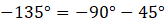 Kąt -135° można zapisać jako: -90° - 45°. Ramie końcowe znajduje się zatem w IV ćwiartce układu współrzędnych.