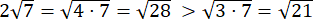 W pierwszym przypadku włącz liczbę pod znak pierwiastka.