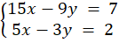 Na początku pomnóż drugie równanie przez -3, a następnie dodaj dwa równania do siebie.