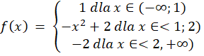Na początku sprawdź do których przedziałów należą poszczególne argumenty, a następnie wybierz odpowiednie funkcje i za ich pomocą oblicz wartość funkcji.