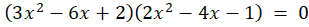 Wykorzystaj fakt, że iloczyn dwóch liczb jest równy 0, gdy przynajmniej jedna z nich jest równa 0. Następnie dla każdego z podrównań wykorzystaj wzór na deltę