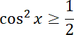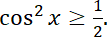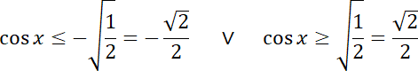 Aby rozwiązać nierówność, zacznij od spierwiastkowania jej obustronnie i rozbicia na alternatywę dwóch nierówności. Następnie rozwiąż je, posługując się wykresem funkcji cosinus.